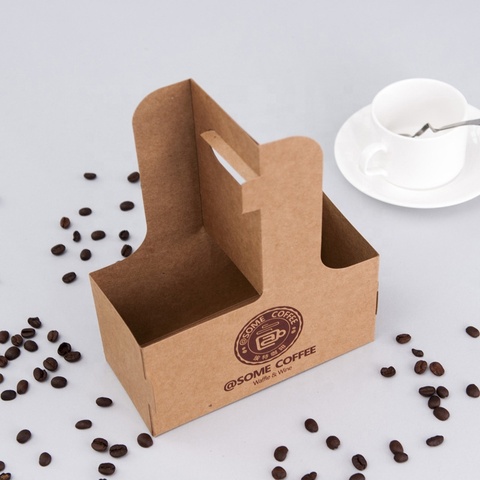 Portavasos de 4 tazas de papel Kraft corrugado al por mayor, bandeja con asa